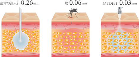 MEDJETは蚊の針をより細い30ミクロン(0.03mm)の水流で頭皮に浸透注入します。